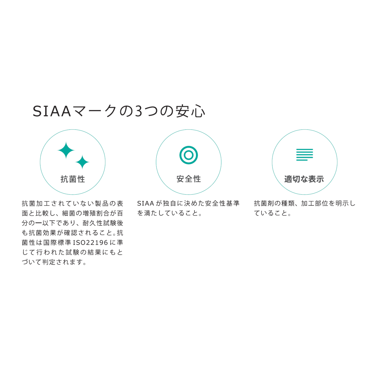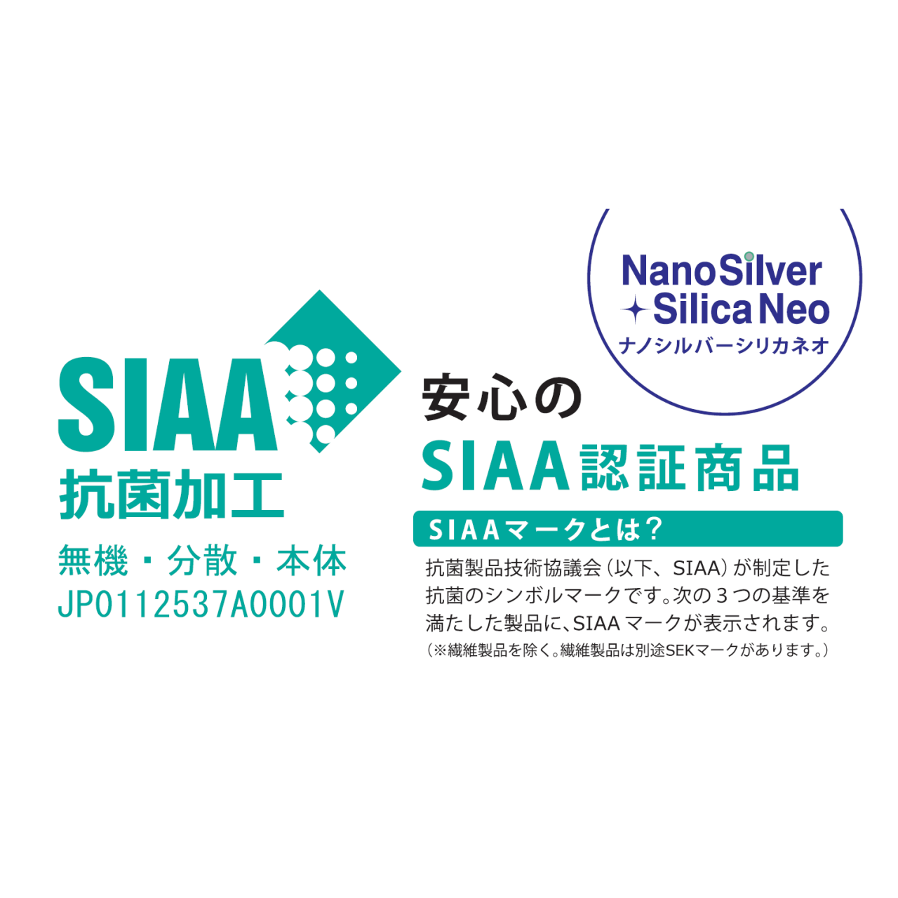 この商品はSIAA(抗菌製品技術協議会)の認証を受けた抗菌剤です。
