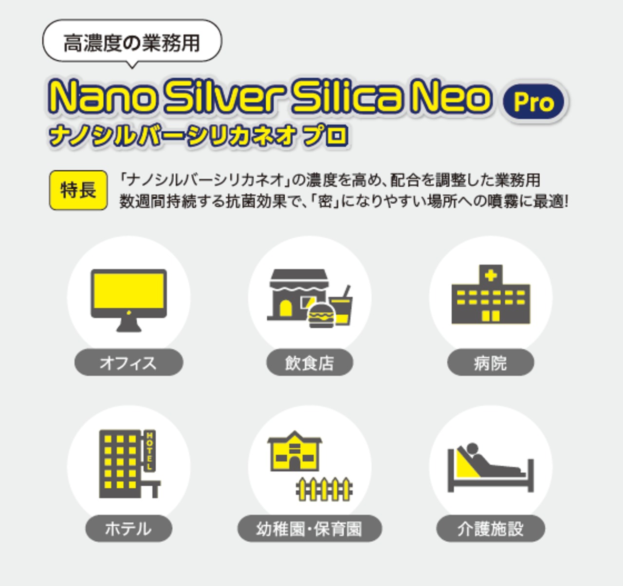 ナノシルバーシリカネオの濃度を高め、配合を調整した業務用です。